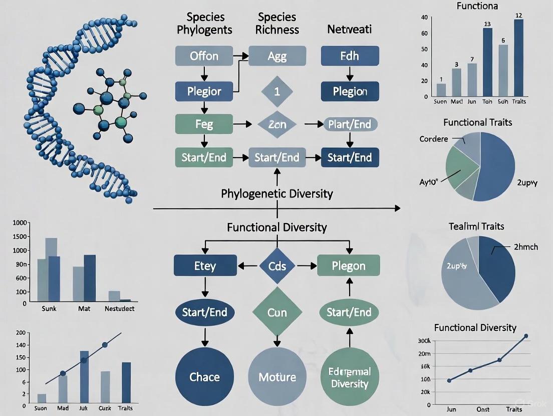 The integration of phylogenetic and functional diversity metrics follows a logical decision pathway that begins with clear conservation objectives and progresses through methodological choices to final prioritization. This framework helps researchers and practitioners select the most appropriate diversity metrics based on their specific conservation goals, whether focused on evolutionary heritage, ecosystem functioning, or comprehensive biodiversity protection.